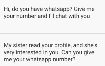Between the time when scammers create their accounts and the time their accounts get closed for trying to scam people, scammers will try to move conversations off of the dating platform.